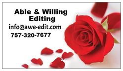 Before you turn in your final draft to your publisher or term paper into your professor, send it to Able & Willing Editing. As your personal editor, we carefully review your work for spelling, grammar and formatting errors that your typical word processors can't recognize. With low rates Able & Willing Editing in Atlanta is your source for book and document editing services. We also provided copyright and ISBN services.